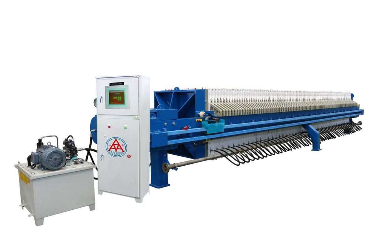 首先是正壓強壓脫水,也稱進漿脫水,即一定數量的濾板在強機械力的作用下被緊密排成一列,濾板面和濾板面之間形成濾室,過濾物料在強大的正壓下被送入濾室,進入濾室的過濾物料其固體部分被過濾介質(如濾布)截留形成濾餅,液體部分透過過濾介質而排出濾室,從而達到固液分離的目的,隨著正壓壓強的變大,固液分離則更完全,但從能源和成本方面考慮,過高的正壓壓強不劃算。